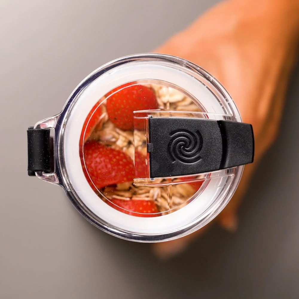 Gracias al tapón para beber, el uso de la batidora es aún más cómodo. Gracias a la boquilla integrada, puede beber directamente del dispositivo, y el cierre a presión garantiza un sellado a prueba de fugas, por lo que no tiene que preocuparse por derramar su bebida en su bolsa.